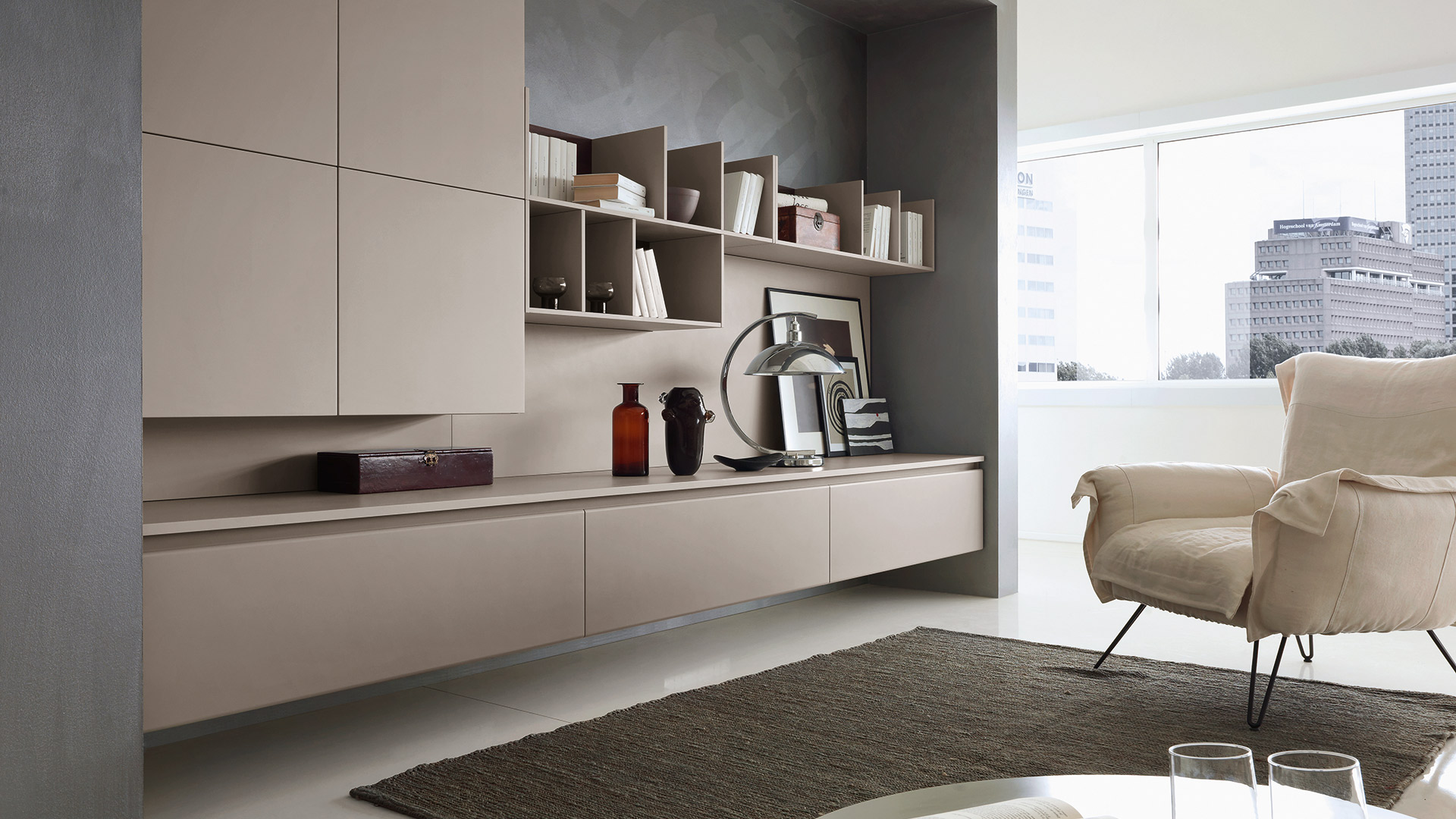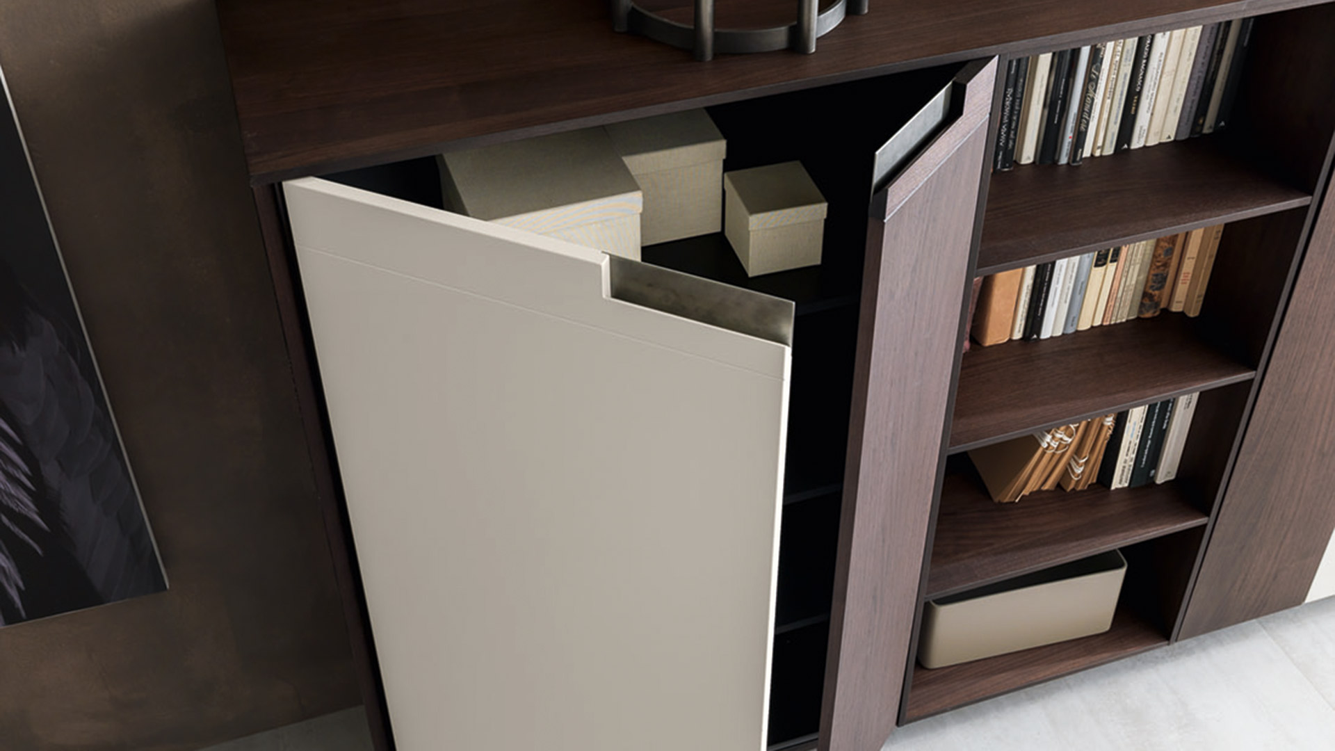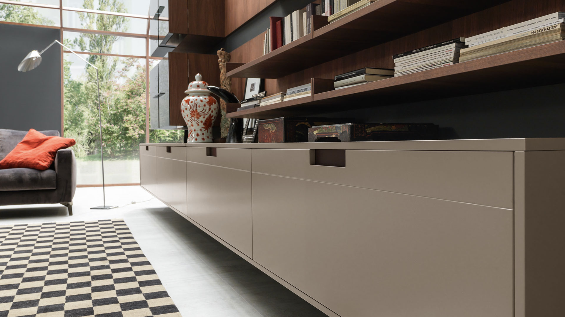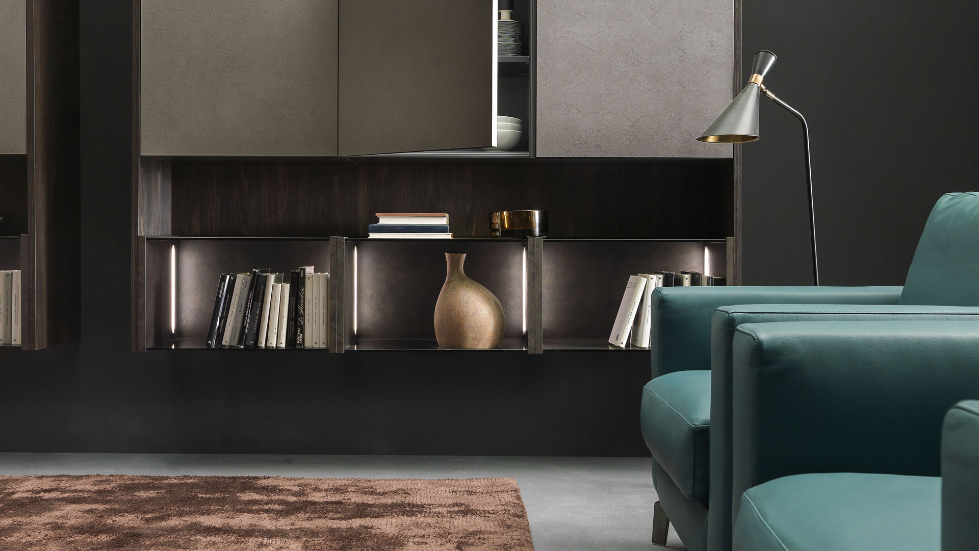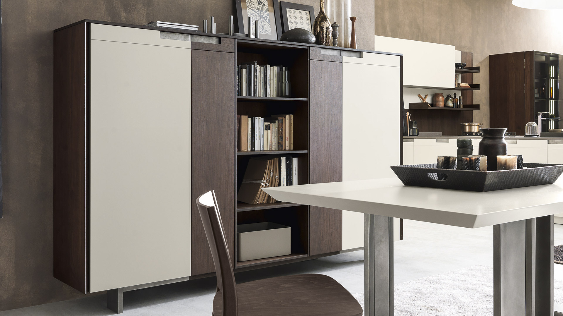 The solutions are given by the opening of shared environments in which there are no boundaries, but only new frontiers to explore. The kitchen blends with the surrounding spaces, creating living areas that draw the contemporary spirit of the Pedini collections with a modern decor.